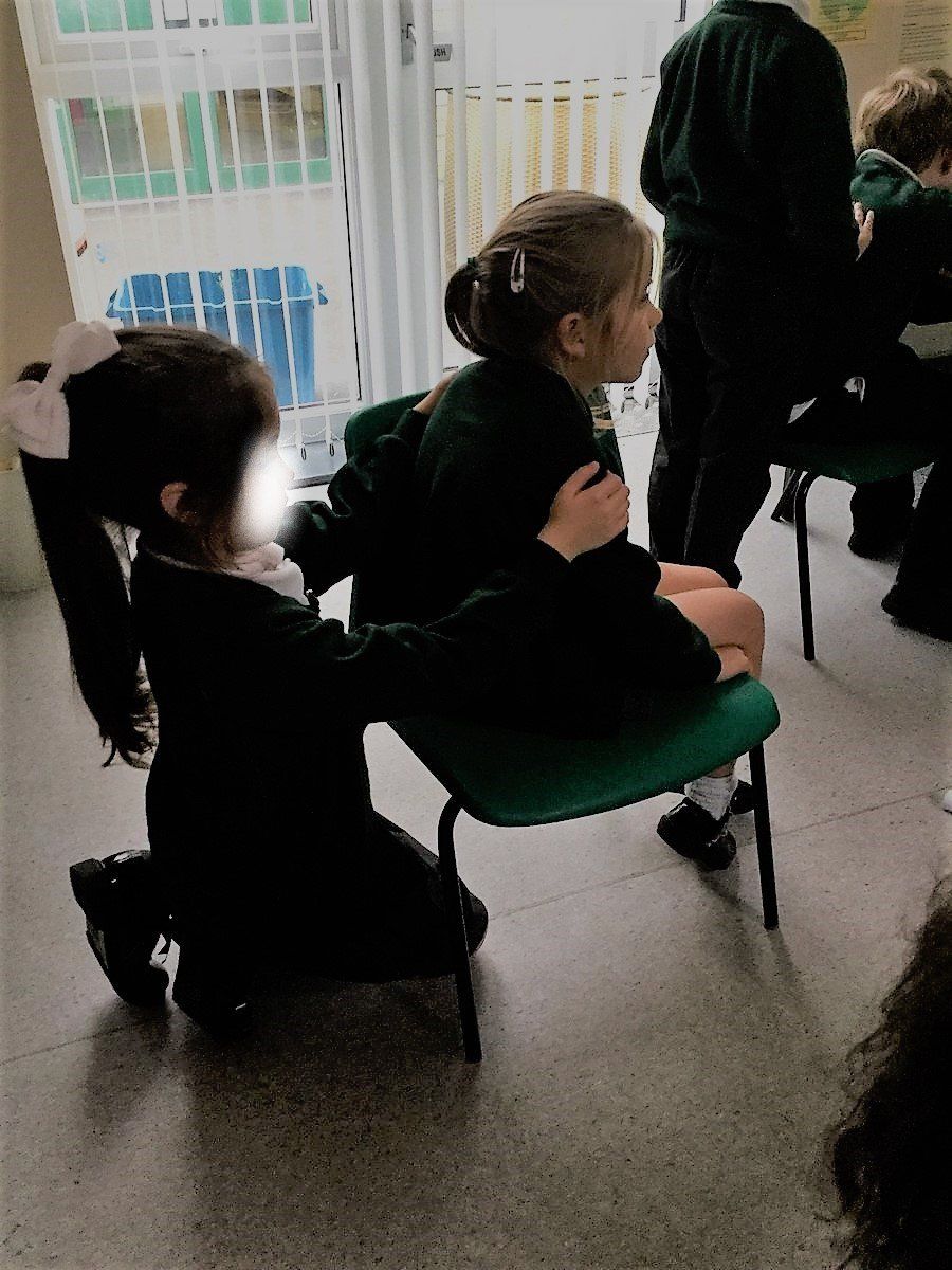 Paired children only ever work on their partners clothed back, neck, head and arms.